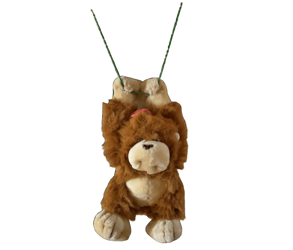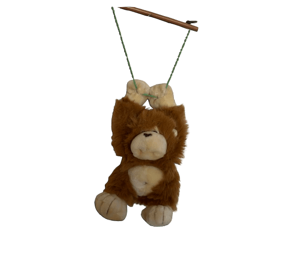 Je kunt de aap ergens aan ophangen middels deze trapezestok.
