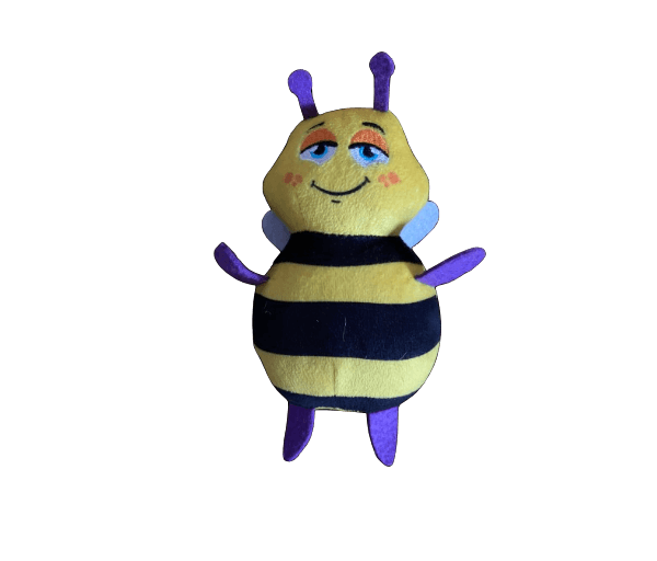 Schattig bijtje met paarse pootjes en voelsprietjes en witte vleugeltjes. Afmetingen: 16x11x6