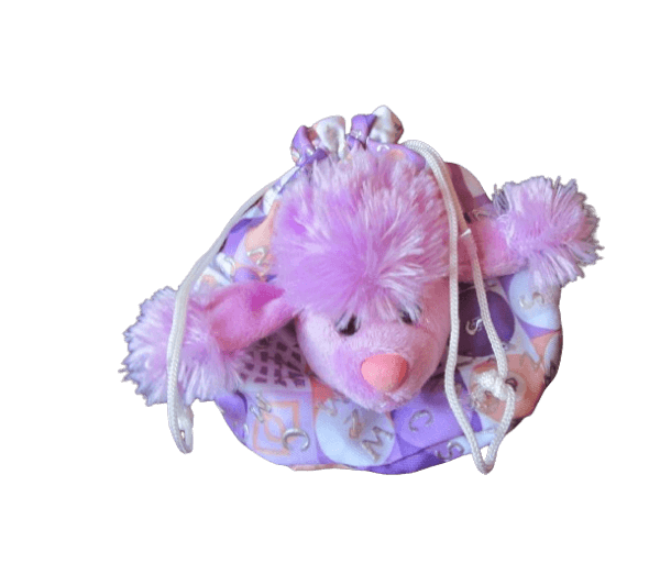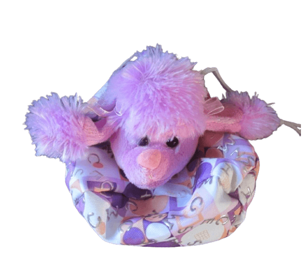 Superschattig buideltje lila met een pluche hondenkopje/poedeltje erop.
