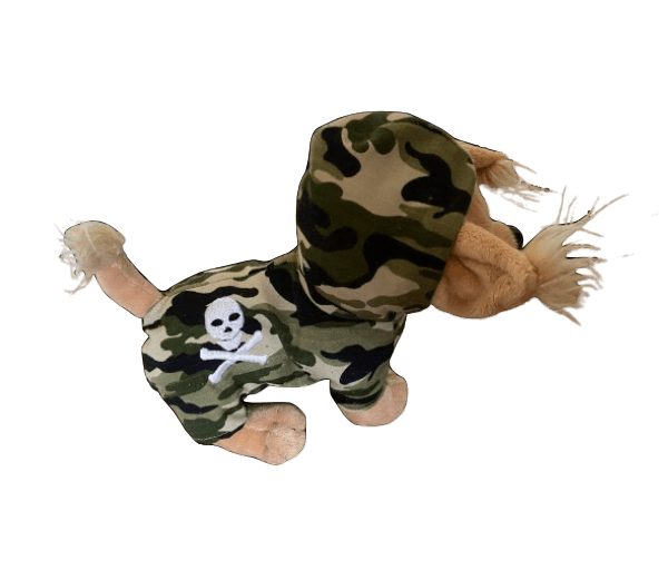 Jasje is van camouflagestof, heeft een capuchon en een doodshoofdapplicatie.