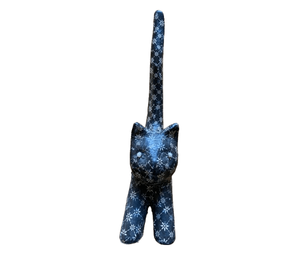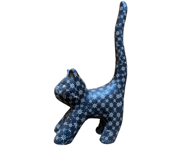 Superleuke zwarte kat met bloemetjes van papier maché. Met een hele hoge staart. Afmetingen: 35x18x8 cm