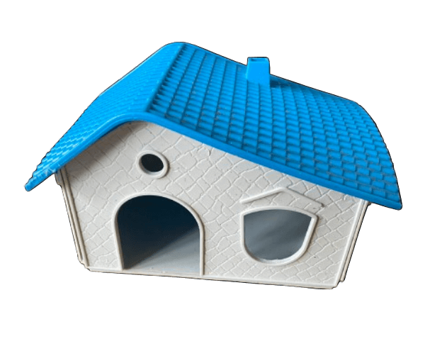 Leuk wit kunststof hamster huisje met blauw dak (kan open gemaakt worden)