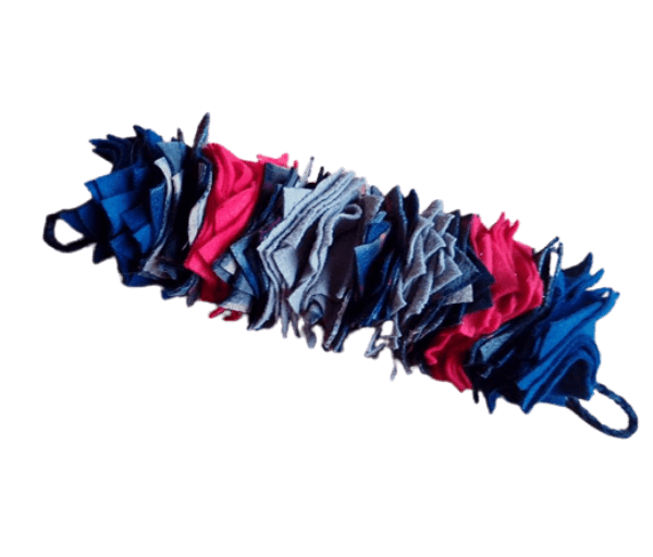 Snaffels zijn speeltjes die je op twee manieren kan gebruiken: Als apporteerspeeltje of als zoek/snuffelspelletje om kleine snoepjes in te verstoppen. Dus apporteren en snuffelen in één: snaffelen. Een snaffel kan als snuffelspeeltje neergelegd en/of gerold worden (maar tevens opgehangen – vertikaal of horizontaal, want er zijn 2 “handvatten”). Maar ook als apporteerspeeltje kan het heel goed dienst doen.
