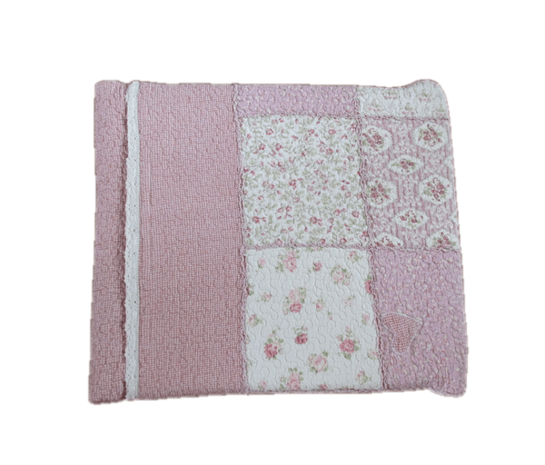 Schattig roze gewatteerd honden- (of katten)kussen (dubbelzijdig te gebruiken) met wasbare hoes (klittenbandsluiting) met beeldig bloemetjesmotief in patchwork.