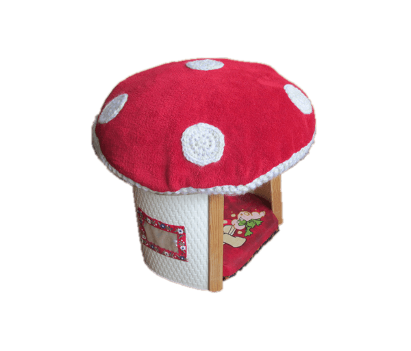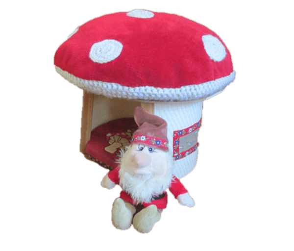 Omdat het dakje lekker zacht en opgevuld is kan er ook bovenop het paddenstoeltje gelegen worden.