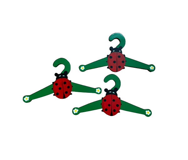 Leuk, heel stevig houten kleerhangertje beschilderd aan beide zijden met een lieveheersbeestje