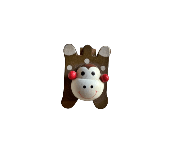 Leuk houten knijpertje met een aapjeskopje met een dik klein stevig knijpertje aan de binnenkant en een magneetje aan de achterkant.