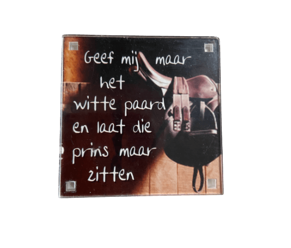 Tekst voorkant: ‘Geef mij maar het witte paard en laat die prins maar zitten’.