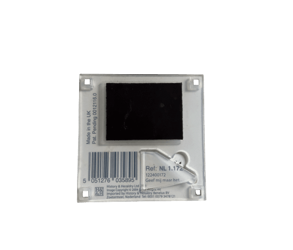 Leuk vierkant plastic bordje om weg te zetten (dmv mini uitklapstandaardje) of tegen iets magnetisch te plakken, want het heeft aan de achterkant ook een groot magneet.