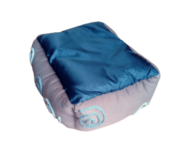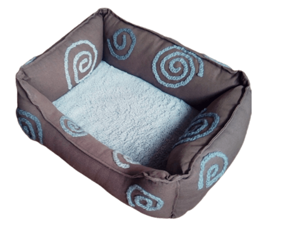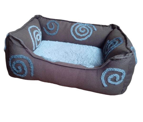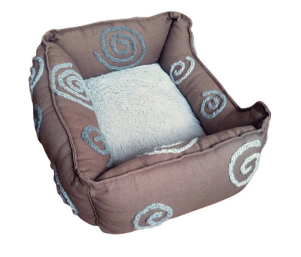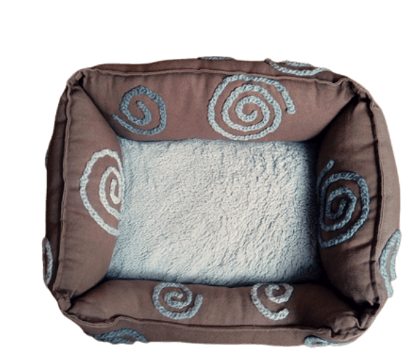 Lief bruin stoffen mandje met heerlijk zacht grijs pluche liggedeelte.