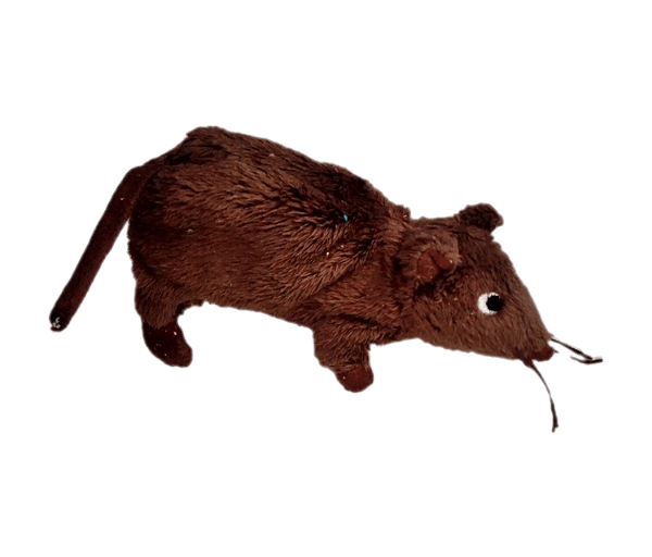 Bruin pluche ratje. Afmetingen: 15x8x5 (excl. staartje)