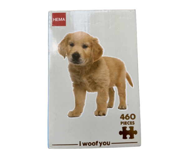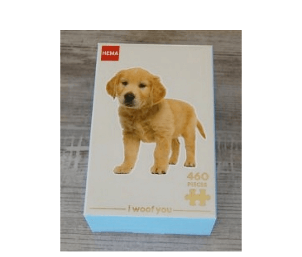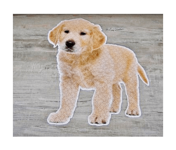 Deze puzzel is niet vierkant, maar heeft de vorm van een Golden Retriever puppy.