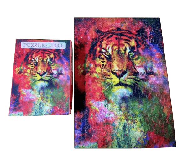 Prachtige kleurrijke kwaliteitspuzzel met de afbeelding van een tijgerkop.