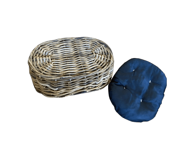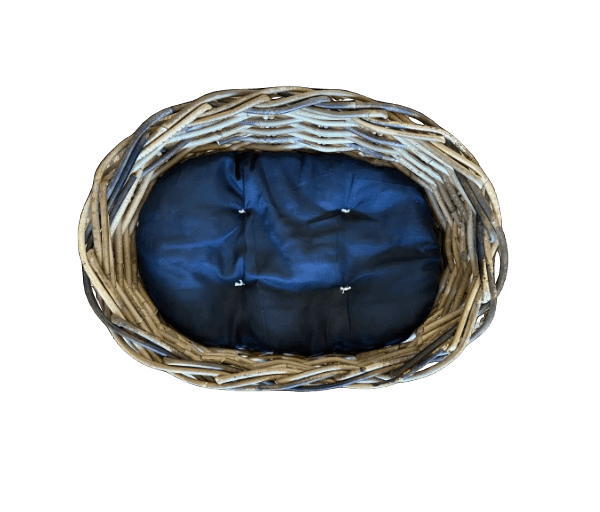 Leuk stevig rieten poezenmandje, meerkleurig riet. Ook geschikt voor klein hondje. Zgan.