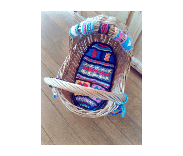Dit is toch eigenlijk veel leuker en origineler dan een standaard kattenmandje? Maar voor een poppenmoedertje is het natuurlijk ook heel erg geschikt