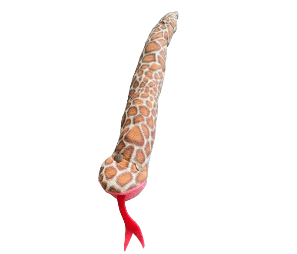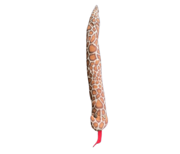 Leuke slang in safarilook. Met roze mond en lange rode tong.