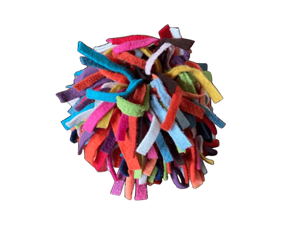 Leuke volle snuffel/speelbal in smalle repen van fleece-stof in allerlei kleuren
