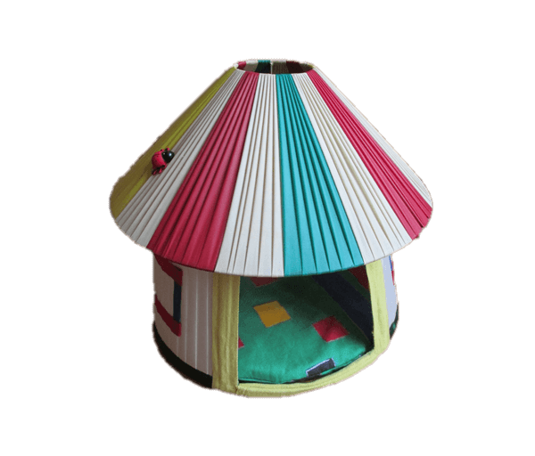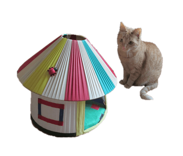 Te lief en grappig voor woorden: een heel leuk kattenhutje (maatje S) in de vorm van een Pipo/circustent-huisje